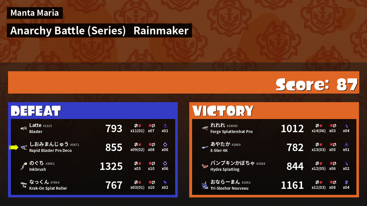 | Mode | Rainmaker - Anarchy Battle (Series) | ||