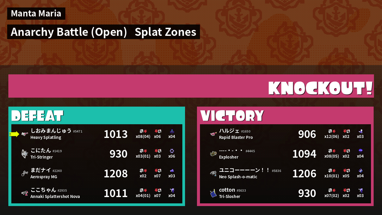 | Mode | Splat Zones - Anarchy Battle (Open) | ||