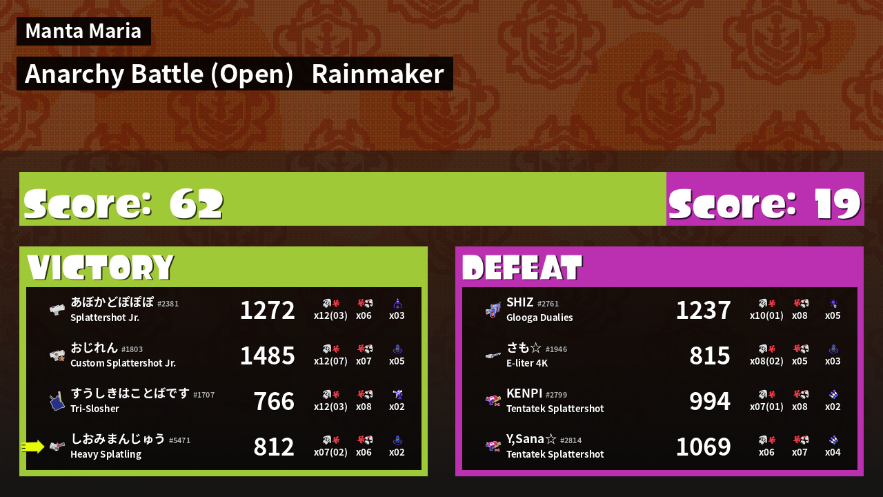 | Mode | Rainmaker - Anarchy Battle (Open) | ||