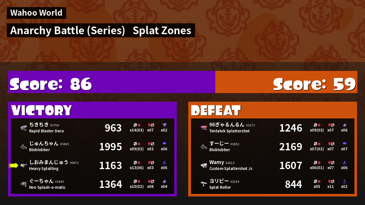 | Mode | Splat Zones - Anarchy Battle (Series) | ||