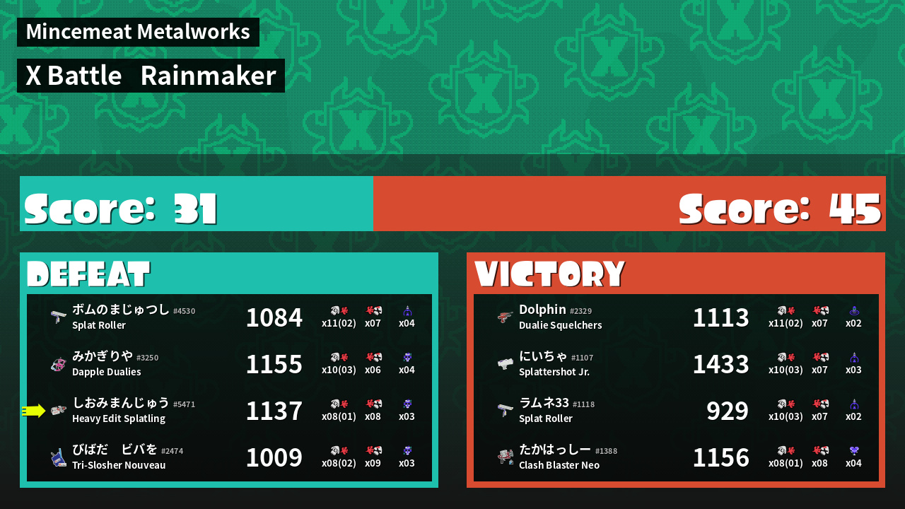 | Mode | Rainmaker - X Battle | ||