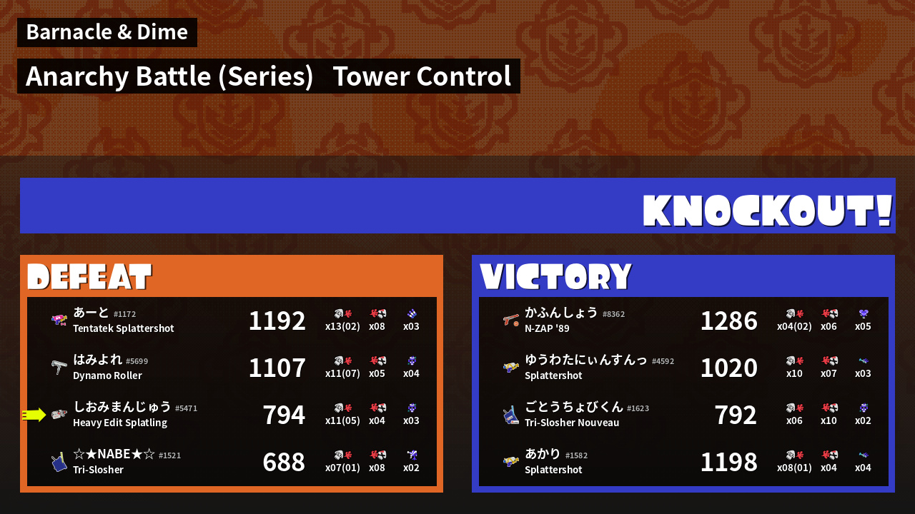 | Mode | Tower Control - Anarchy Battle (Series) | ||