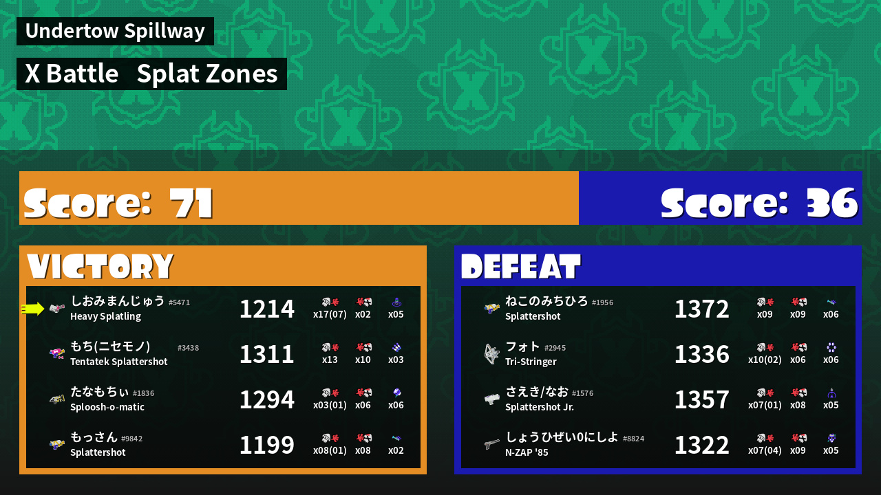 | Mode | Splat Zones - X Battle | ||