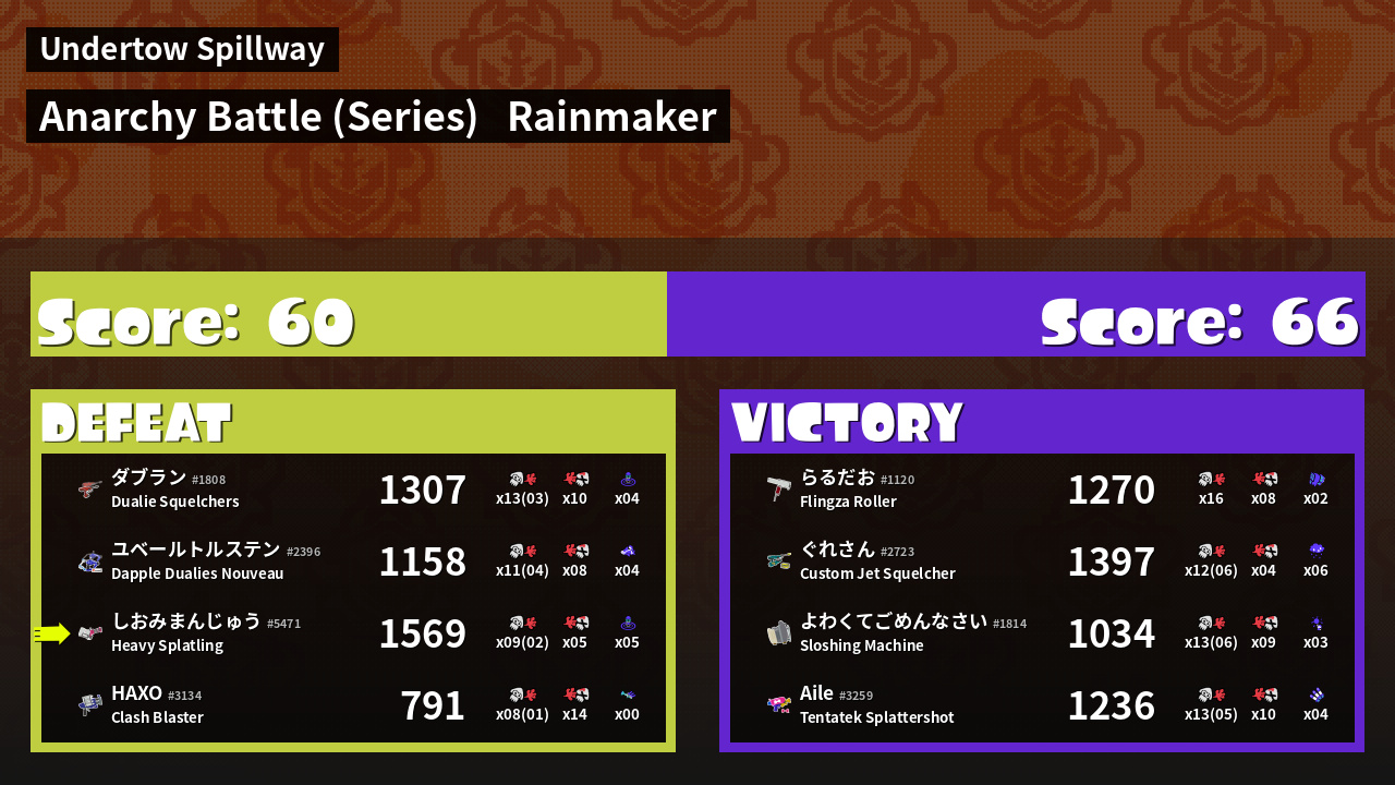 | Mode | Rainmaker - Anarchy Battle (Series) | ||