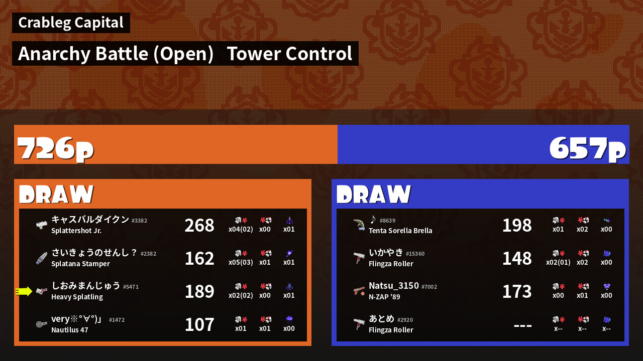 | Mode | Tower Control - Anarchy Battle (Open) | ||