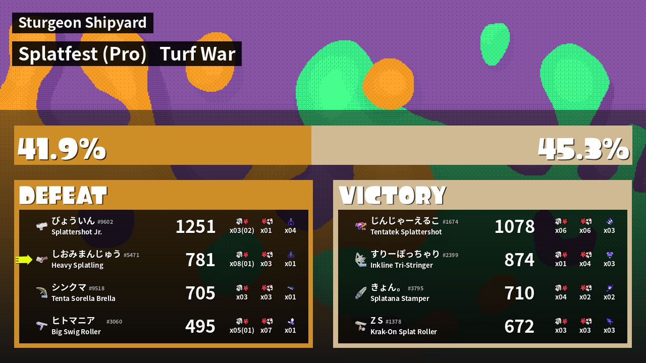 | Mode | Turf War - Splatfest (Pro) | ||