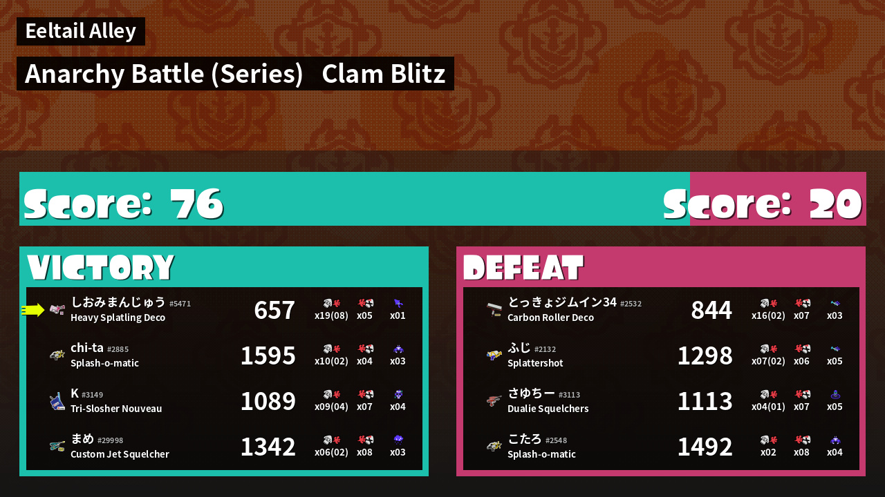 | Mode | Clam Blitz - Anarchy Battle (Series) | ||