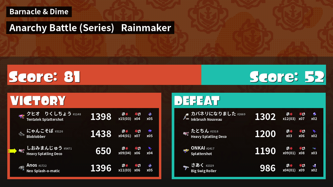 | Mode | Rainmaker - Anarchy Battle (Series) | ||