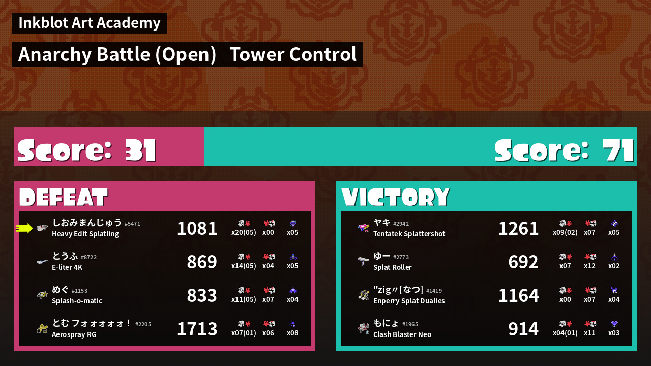 | Mode | Tower Control - Anarchy Battle (Open) | ||