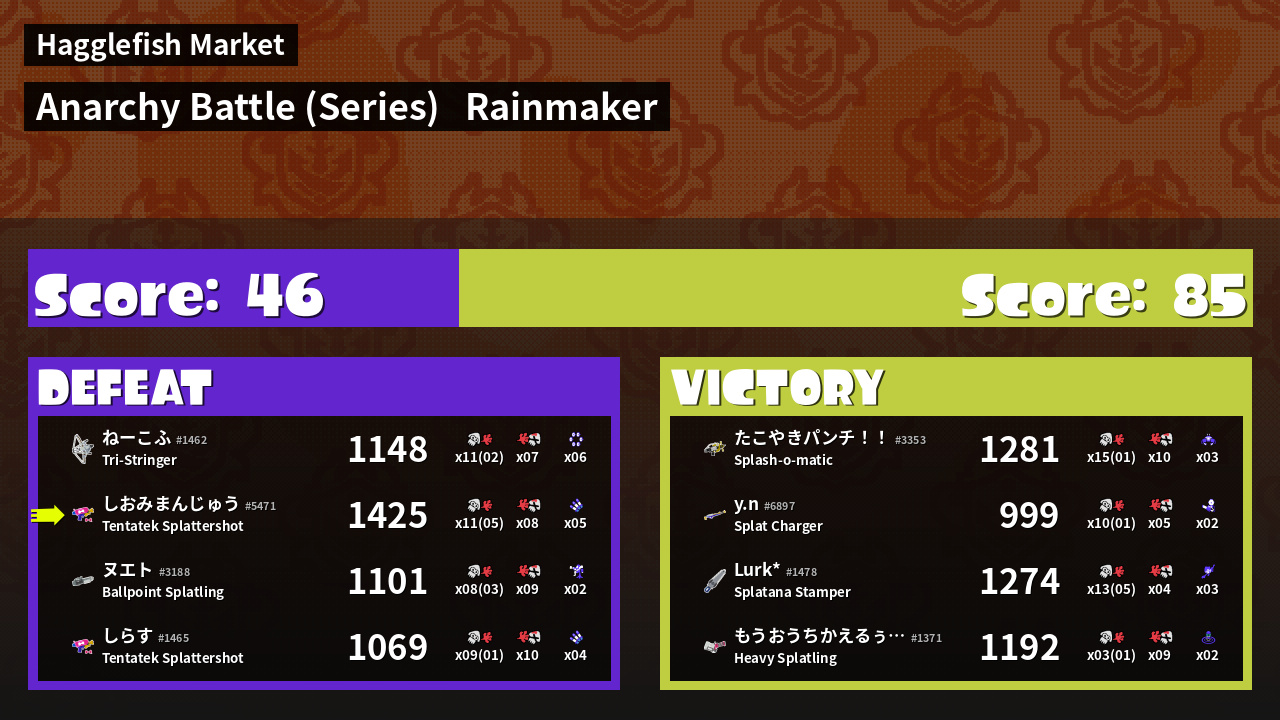 | Medals | #1 Overall Splatter #1 Turf Inker #1 Splat Assister | ||