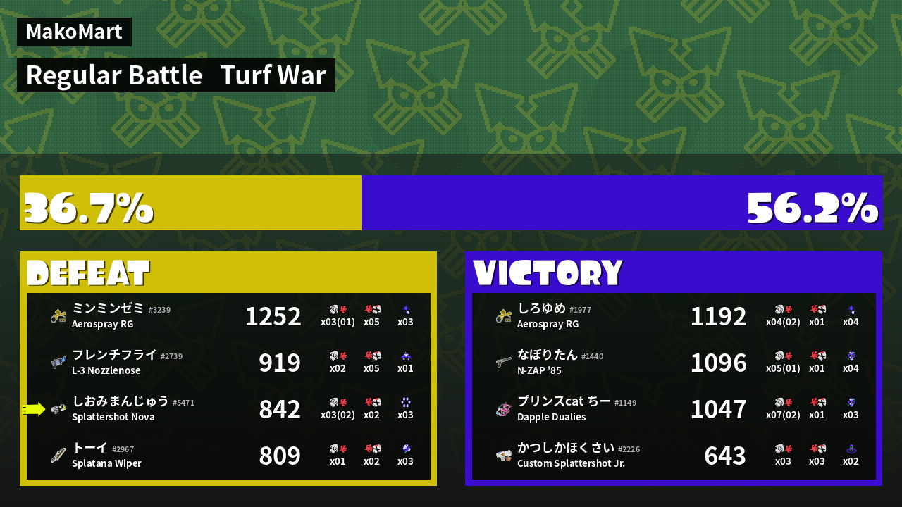 | Mode | Turf War - Regular Battle | ||