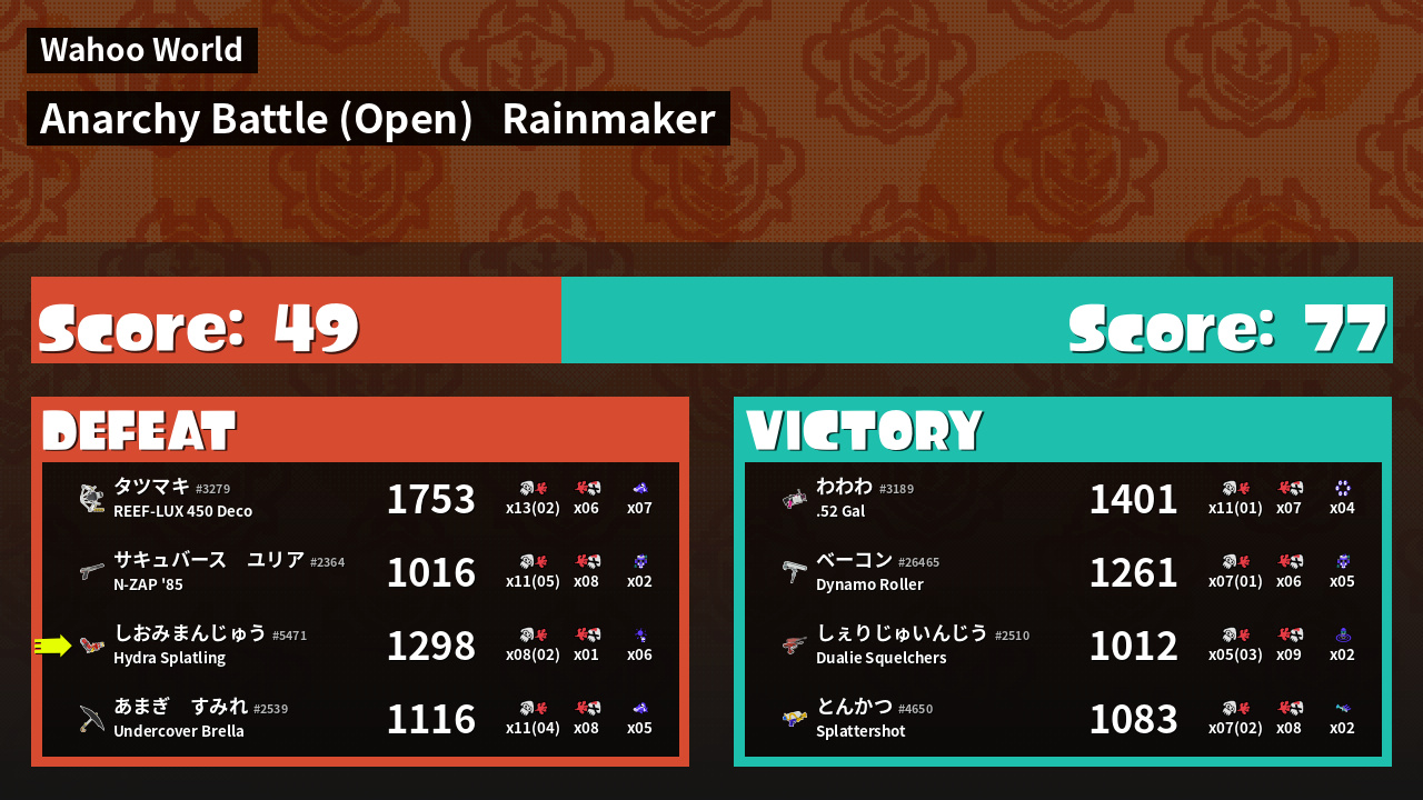 | Mode | Rainmaker - Anarchy Battle (Open) | ||
