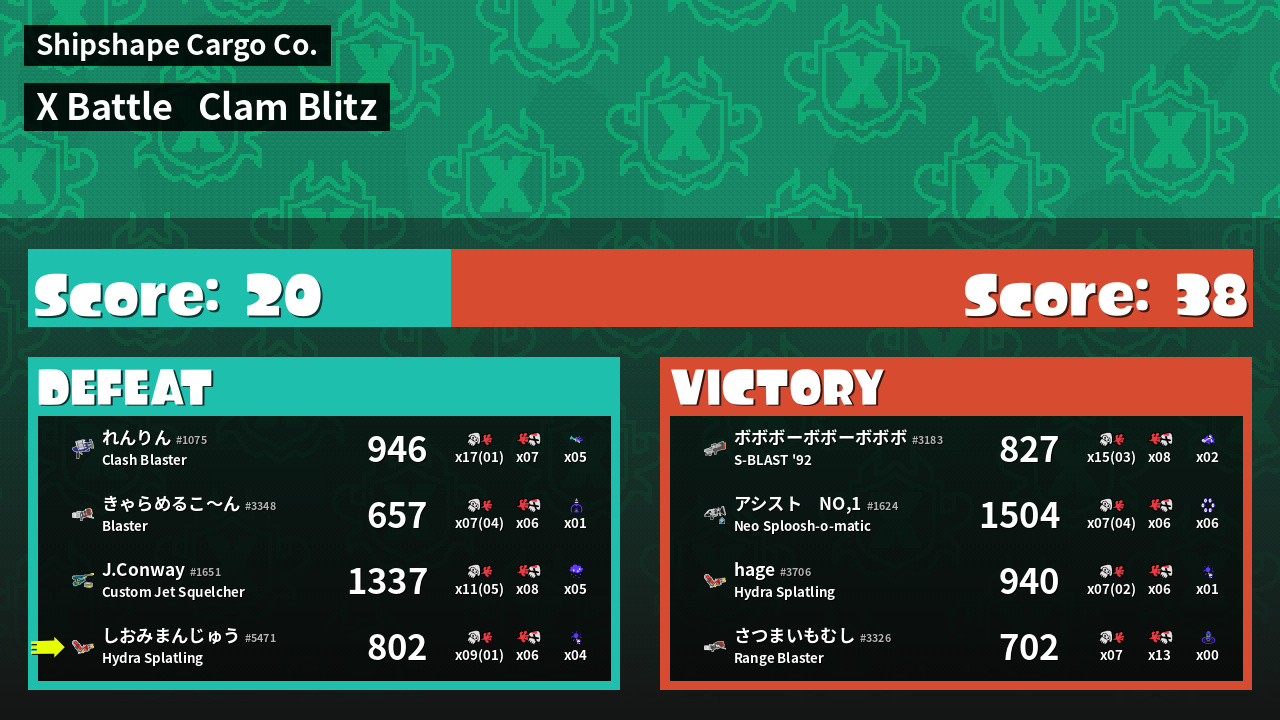 | Medals | #1 Damage Taker #2 Clam Carrier #2 Popular Target | ||