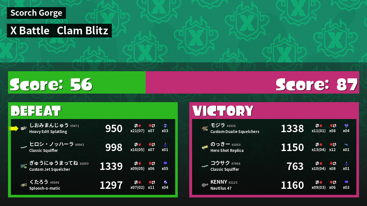 | Mode | Clam Blitz - X Battle | ||