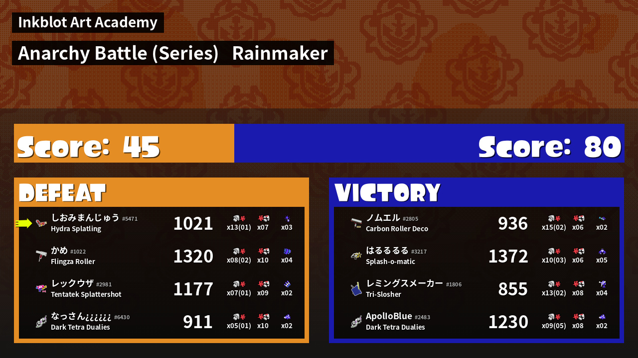 | Mode | Rainmaker - Anarchy Battle (Series) | ||