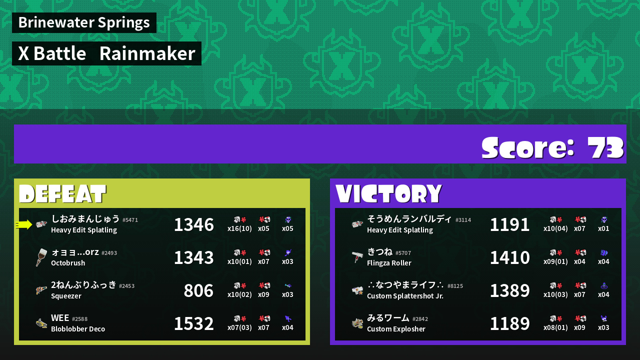 | Weapon | Heavy Edit Splatling ( Curling Bomb / Tacticooler) | ||