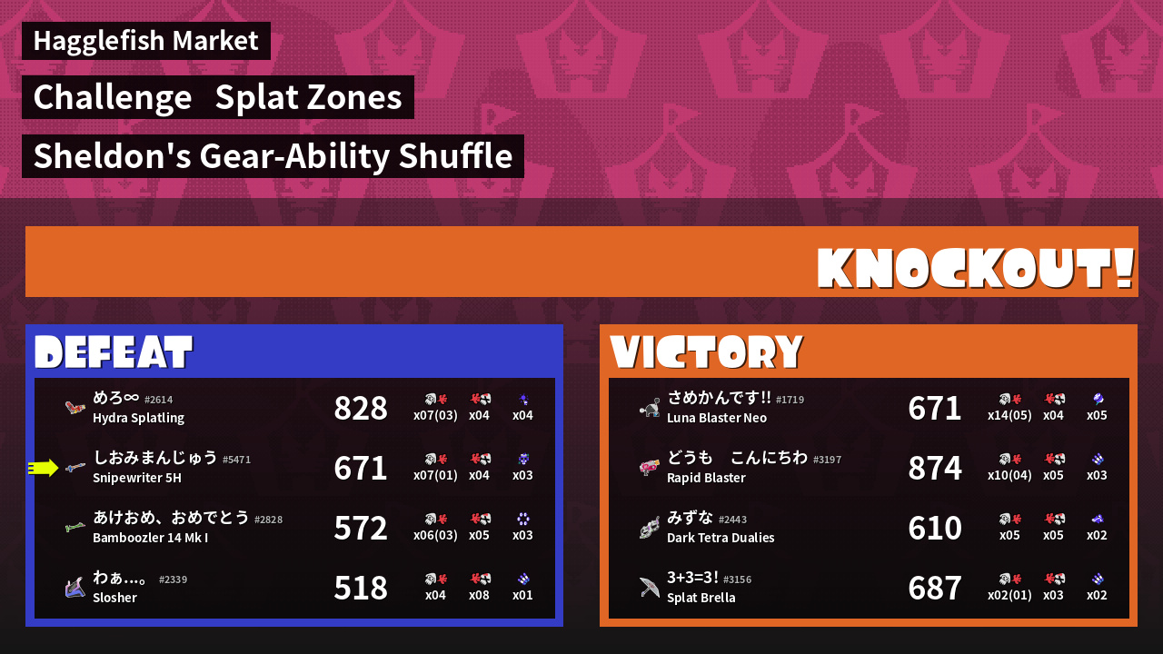 | Medals | #1 Overall Splatter #1 Splat Zone Inker #1 Splat Zone Guard | ||