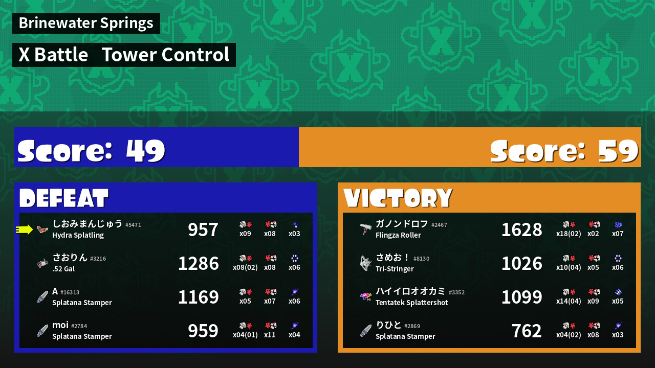 | Medals | #1 Overall Splatter #1 Score Booster Record-Score Setter | ||