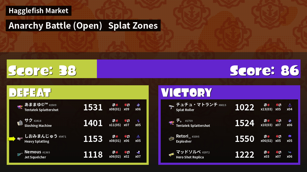 | Mode | Splat Zones - Anarchy Battle (Open) | ||