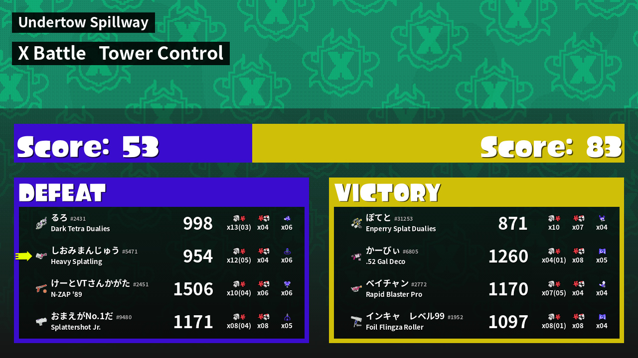 | Medals | Record-Score Setter #1 Splat Assister #1 Tower Stopper | ||