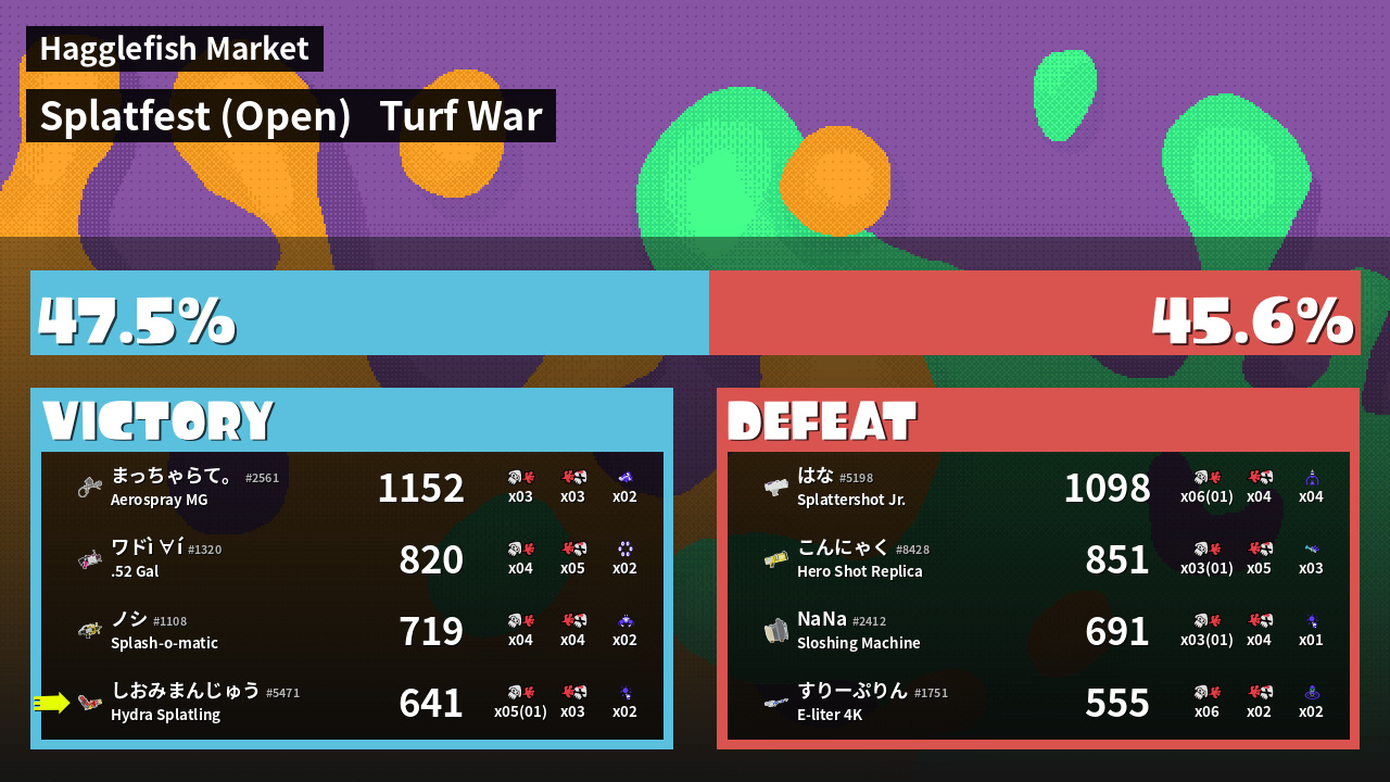 | Medals | #1 Overall Splatter #1 Enemy-Base Inker #1 Super Jump Spot | ||