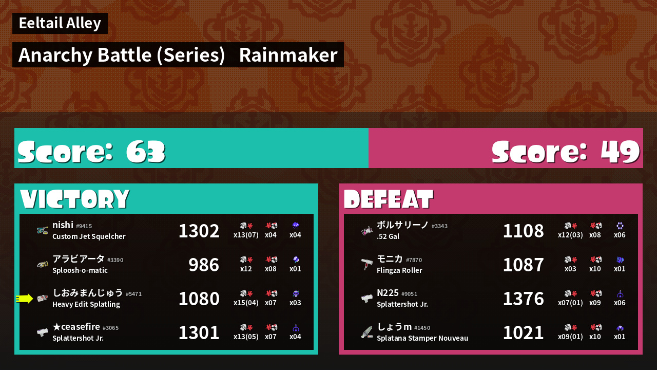 | Medals | #1 Overall Splatter #1 Tacticooler User #2 Enemy Splatter | ||