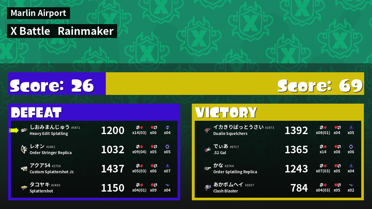 | Mode | Rainmaker - X Battle | ||
