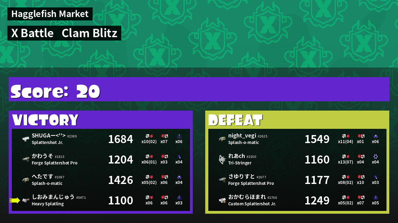 | Medals | #1 Clam Stopper #1 Wave Breaker User #2 Overall Splatter | ||