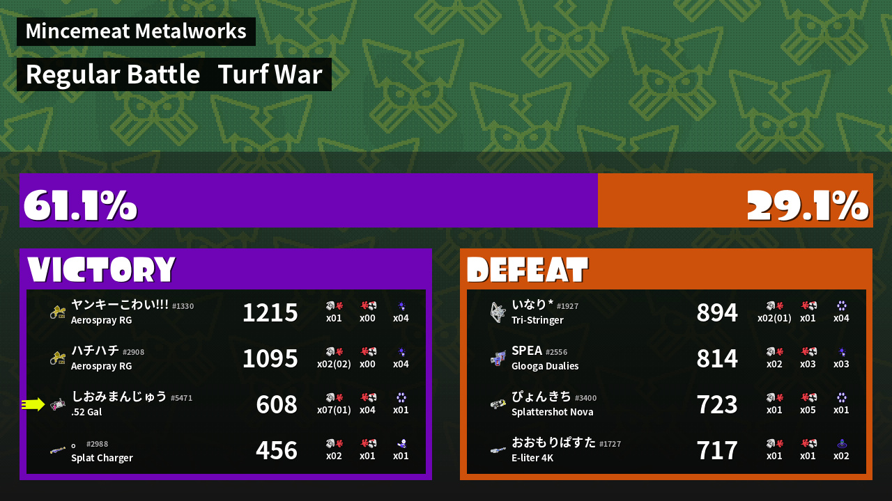 | Medals | #1 Overall Splatter #1 Popular Target #1 Enemy Splatter | ||