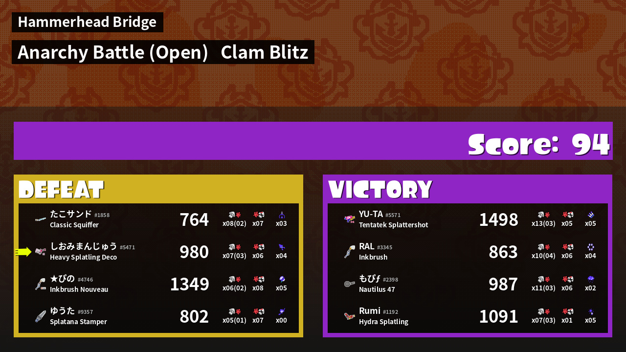 | Mode | Clam Blitz - Anarchy Battle (Open) | ||