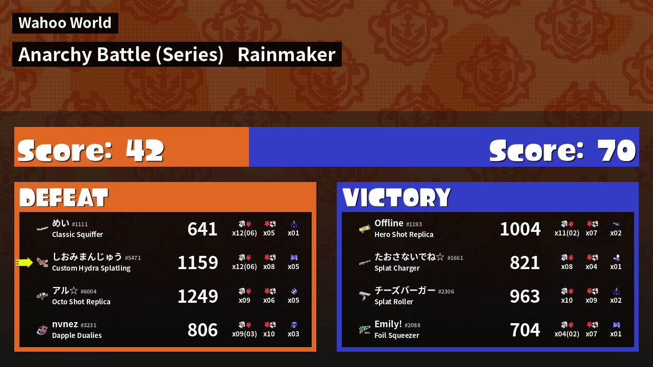| Mode | Rainmaker - Anarchy Battle (Series) | ||