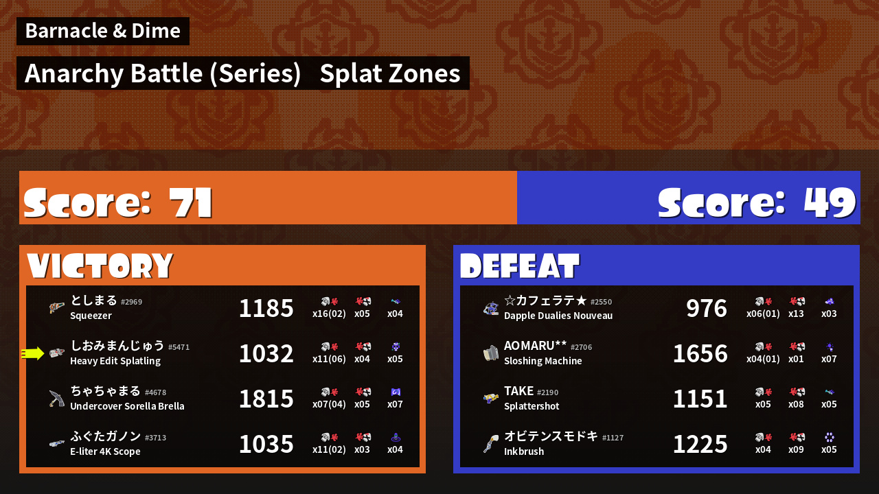| Mode | Splat Zones - Anarchy Battle (Series) | ||