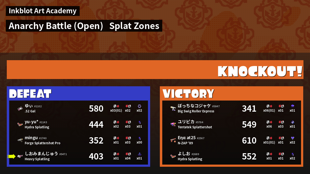 | Mode | Splat Zones - Anarchy Battle (Open) | ||