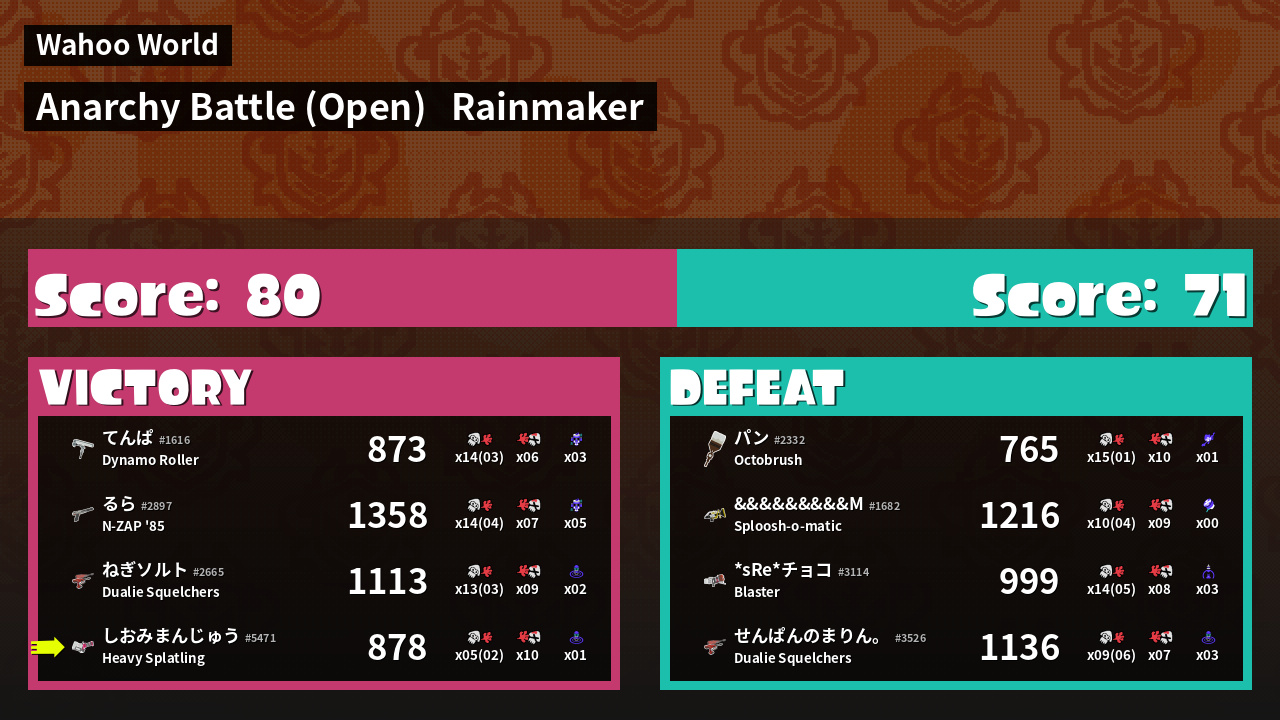 | Mode | Rainmaker - Anarchy Battle (Open) | ||