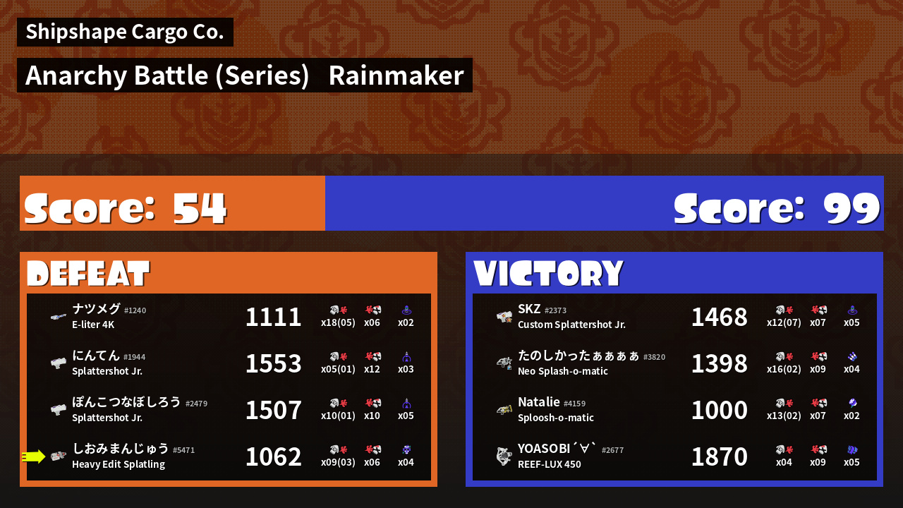 | Mode | Rainmaker - Anarchy Battle (Series) | ||