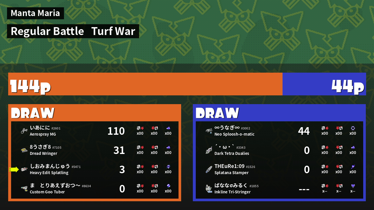 | Mode | Turf War - Regular Battle | ||