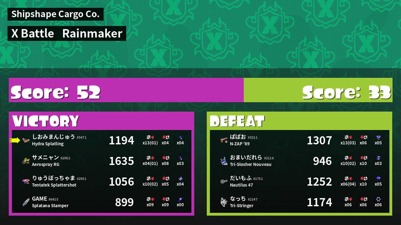 | Weapon | Hydra Splatling ( Autobomb / Booyah Bomb) | ||