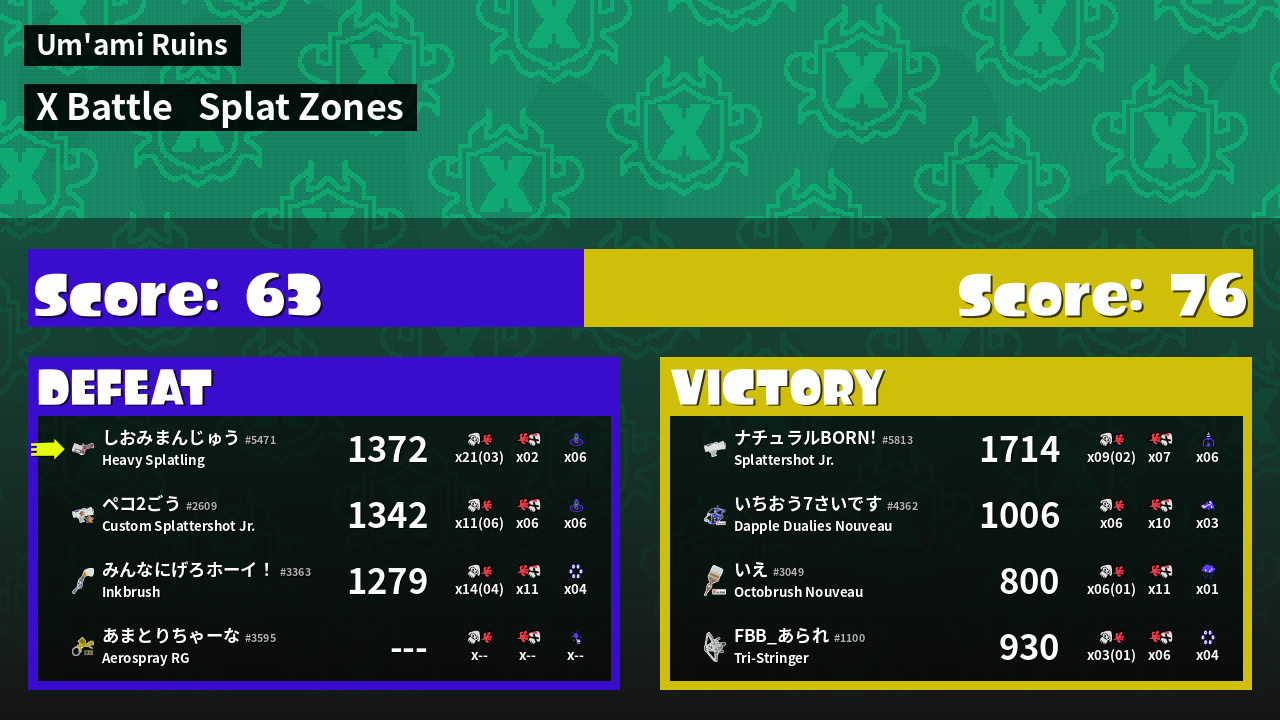 | Medals | #1 Overall Splatter #1 Splat Zone Inker #1 Splat Zone Guard | ||