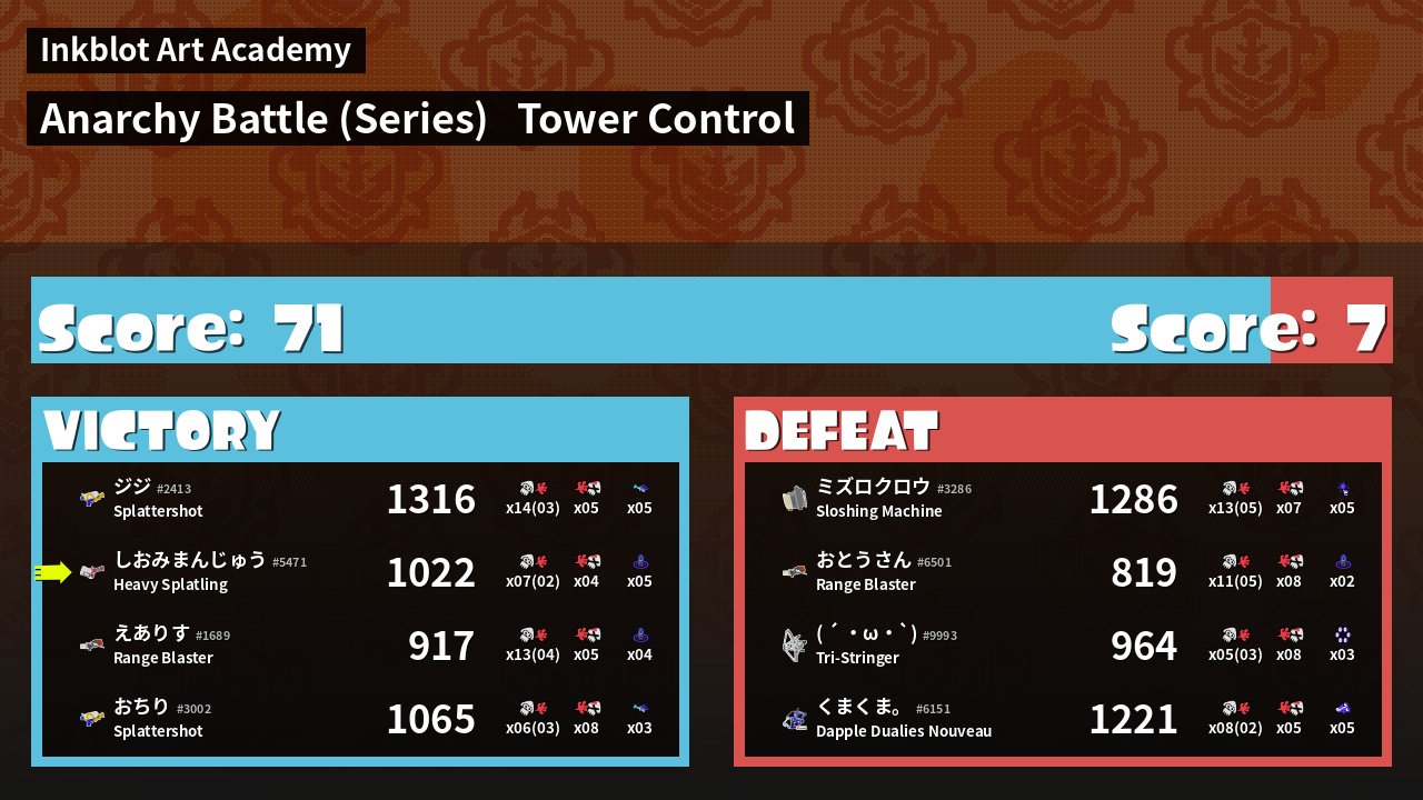 | Mode | Tower Control - Anarchy Battle (Series) | ||