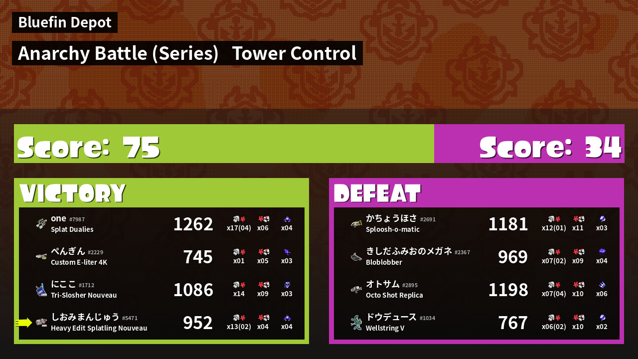 | Medals | #1 Tower Stopper #2 Super Jump Spot #2 Splat Assister | ||