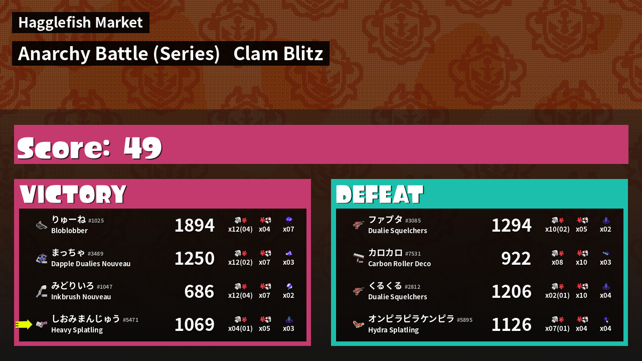 | Mode | Clam Blitz - Anarchy Battle (Series) | ||