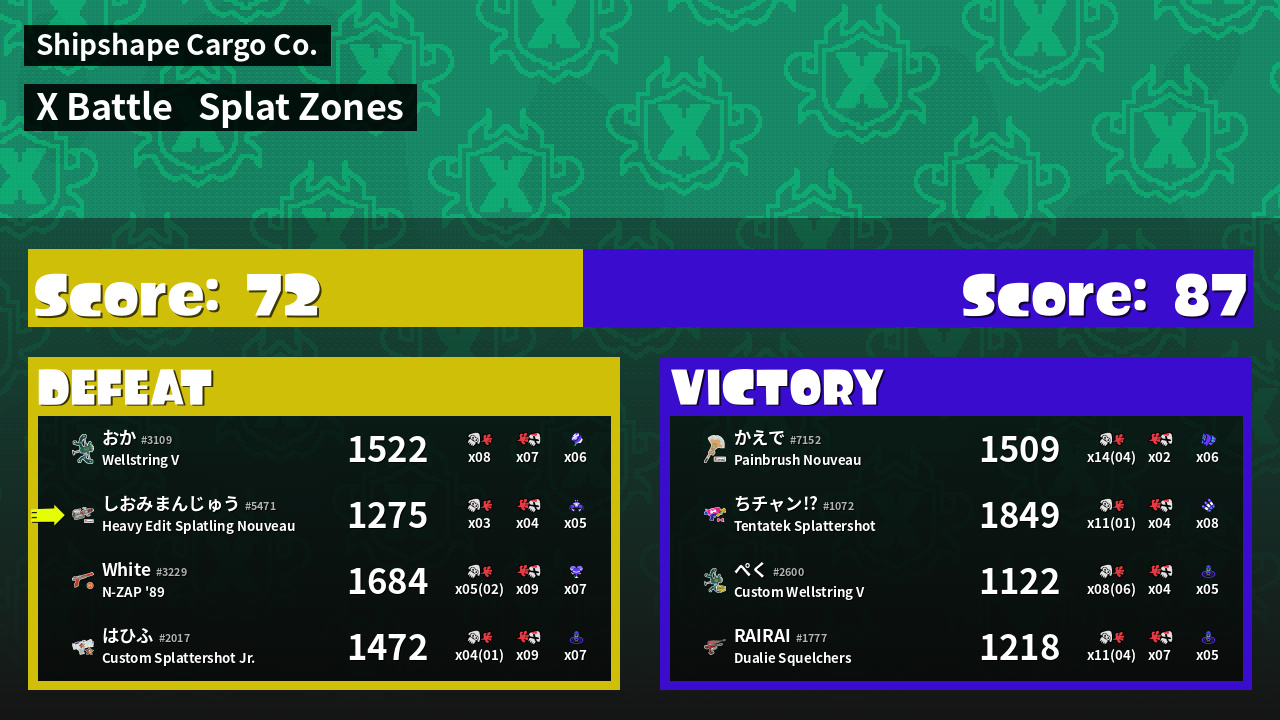 | Medals | #1 Splat Zone Inker #1 Popular Target #1 Super Jump Spot | ||