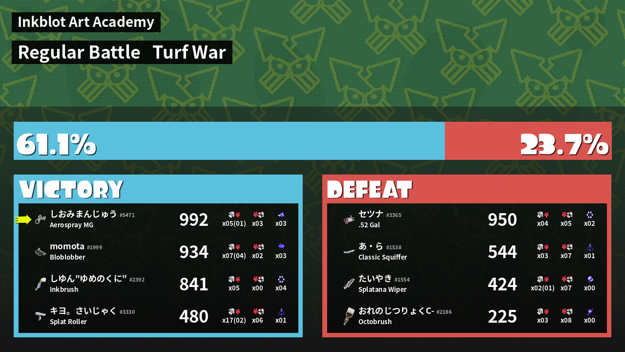 | Mode | Turf War - Regular Battle | ||