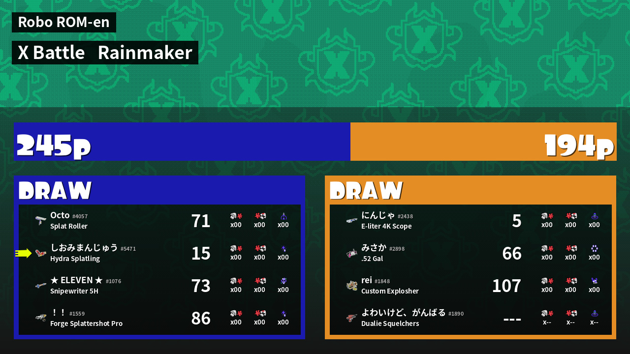 | Weapon | Hydra Splatling ( Autobomb / Booyah Bomb) | ||
