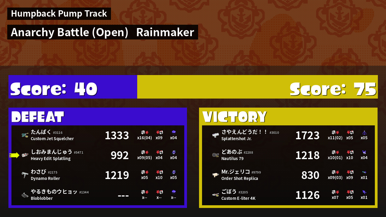 | Mode | Rainmaker - Anarchy Battle (Open) | ||