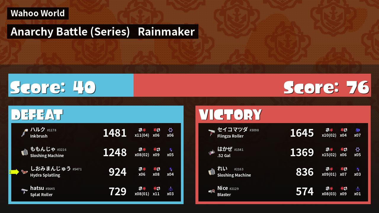 | Mode | Rainmaker - Anarchy Battle (Series) | ||