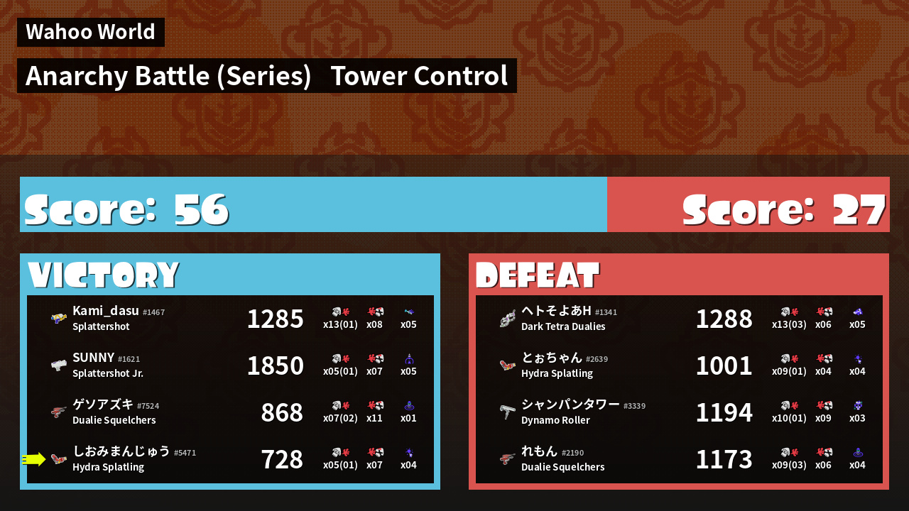 | Mode | Tower Control - Anarchy Battle (Series) | ||