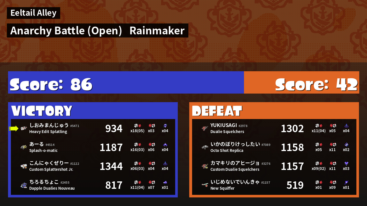 | Mode | Rainmaker - Anarchy Battle (Open) | ||