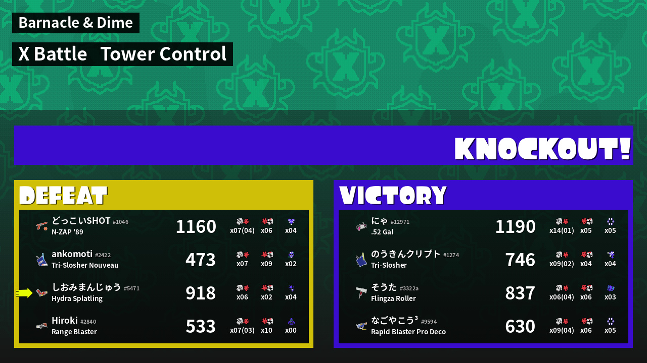 | Mode | Tower Control - X Battle | ||