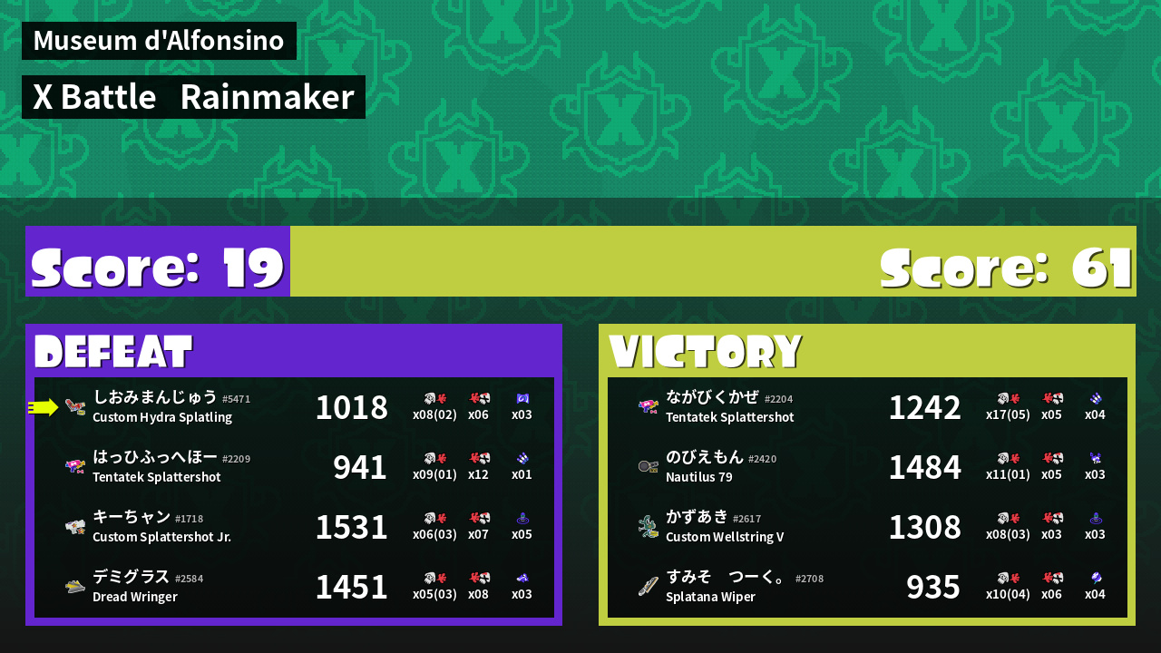 | Weapon | Custom Hydra Splatling ( Ink Mine / Splattercolor Screen) | ||